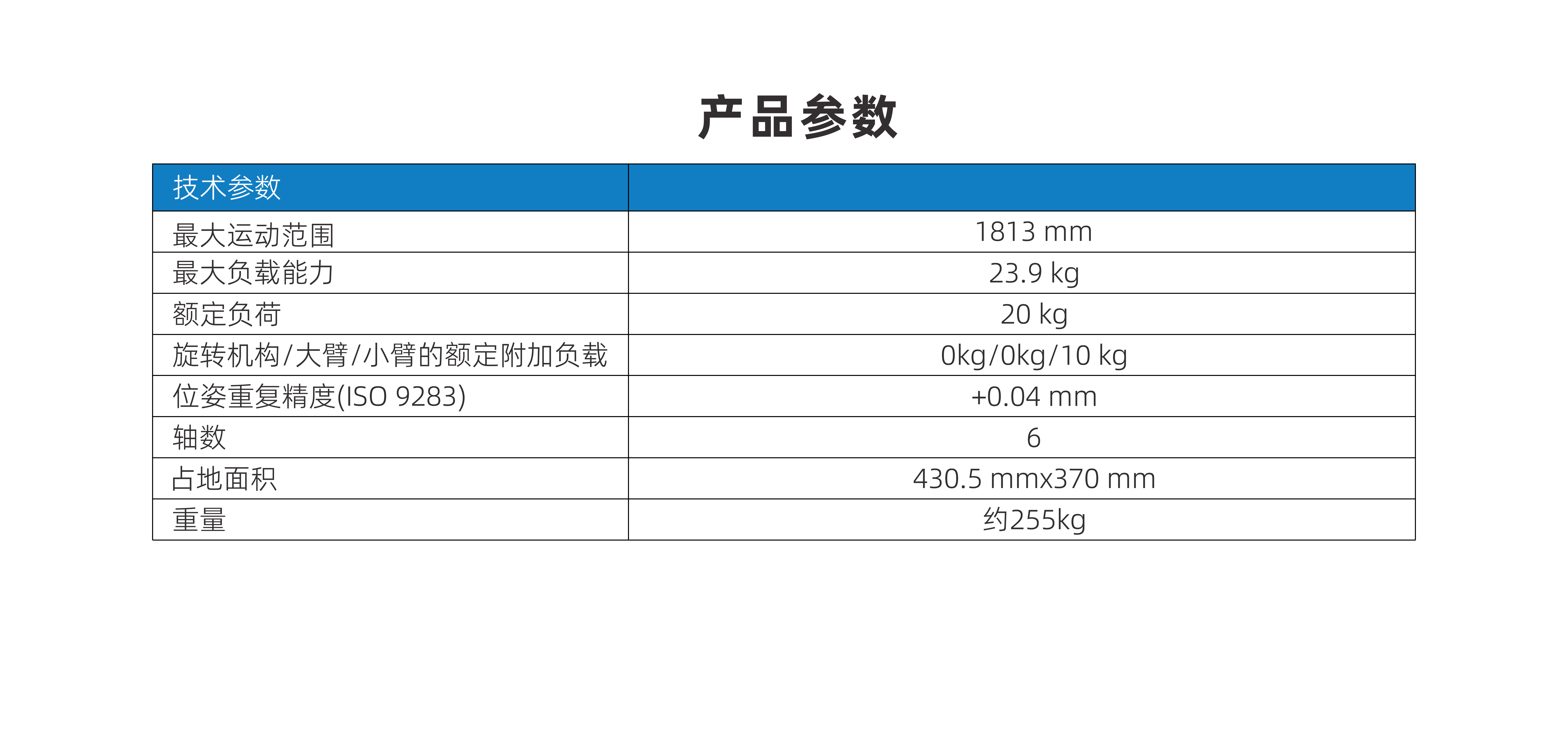 位姿重復精度(ISO 9283) +0.04 mm