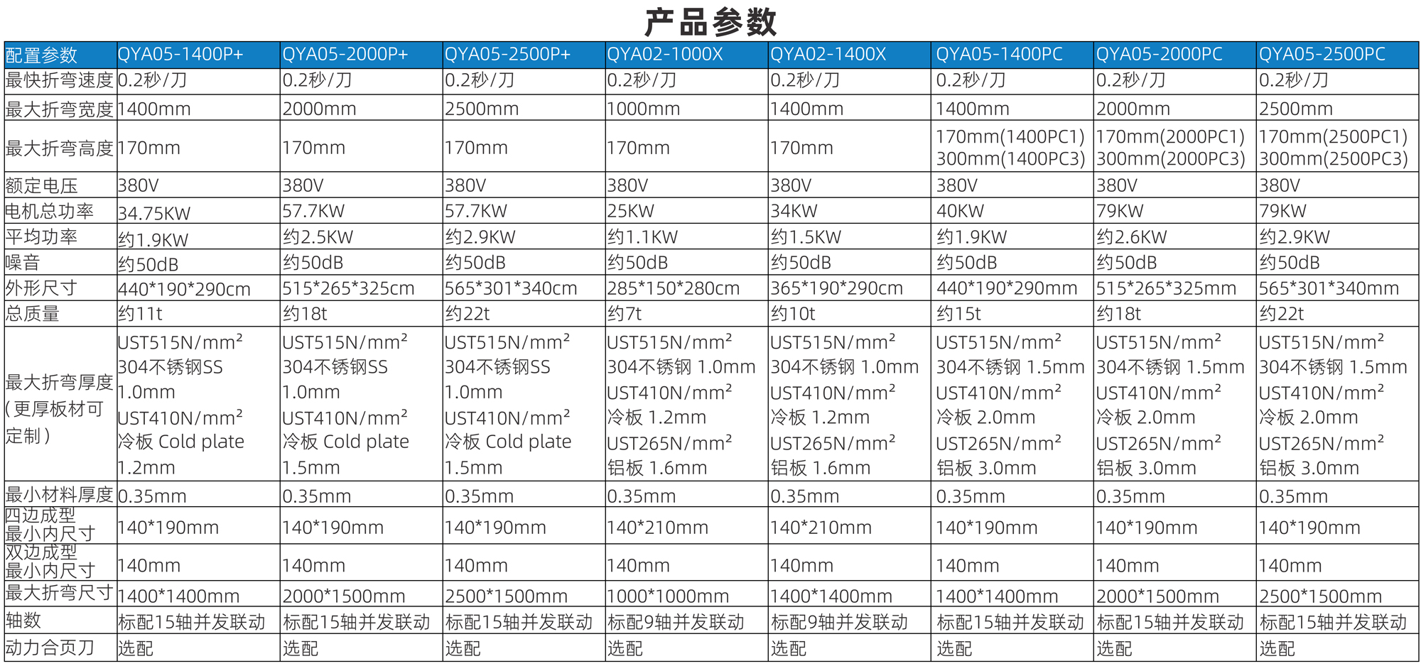 最大折彎寬度 1400mm 2000mm 2500mm 1000mm 1400mm 1400mm 2000mm 2500mm